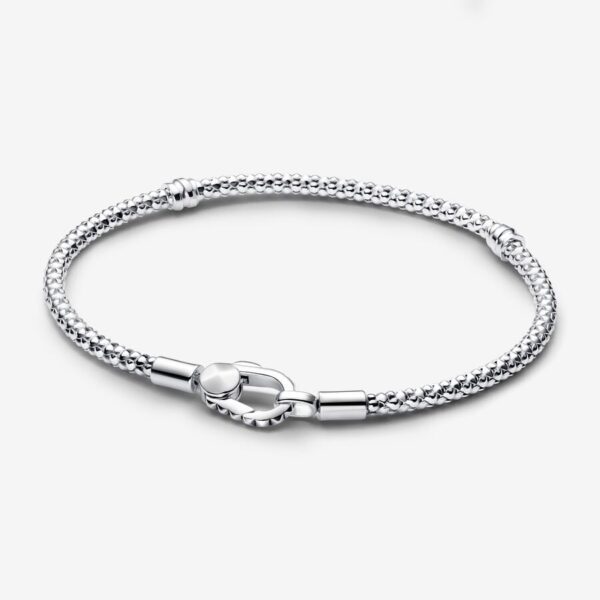 Elegante e leggera, la maglia geometrica è caratterizzata da forme sferiche e piramidali che creano meravigliosi effetti di luce, mentre la piccola chiusura a moschettone conferisce un aspetto minimal. Personalizza questo bracciale con un massimo di 16-18 charm o pendenti per creare un look unico.