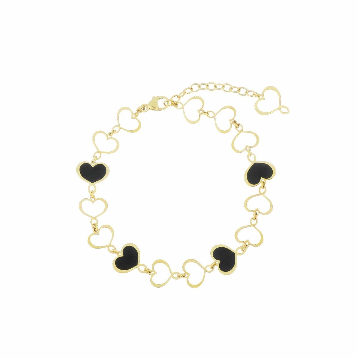 Bracciale di catena con cuori Maman traforati e quattro cuori maman smaltati in nero.