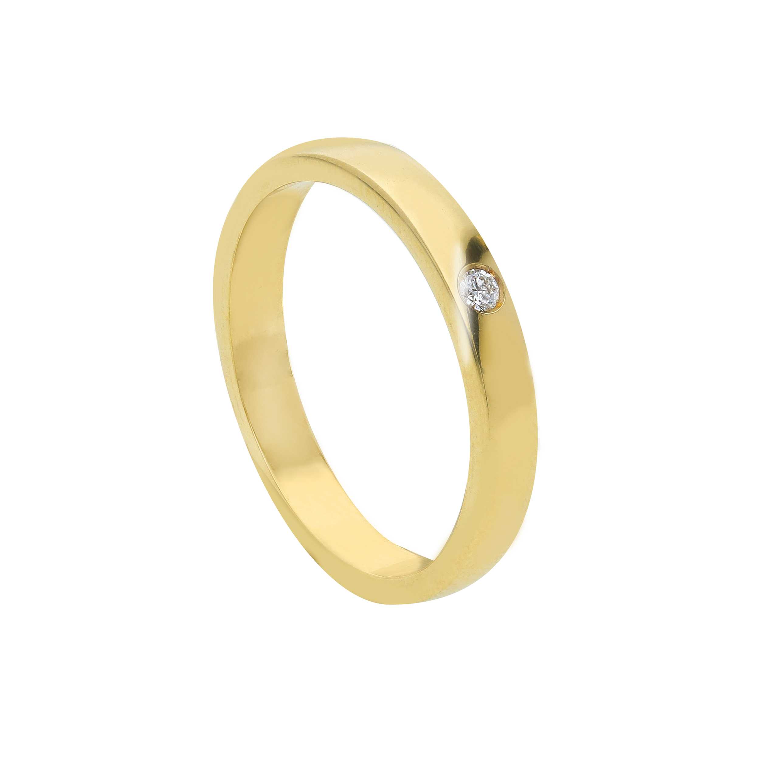 Diamante incastonato da 0,03 ct aggiunge un tocco di luce raffinato e prezioso, impreziosendo la fede con un dettaglio discreto e luminoso.