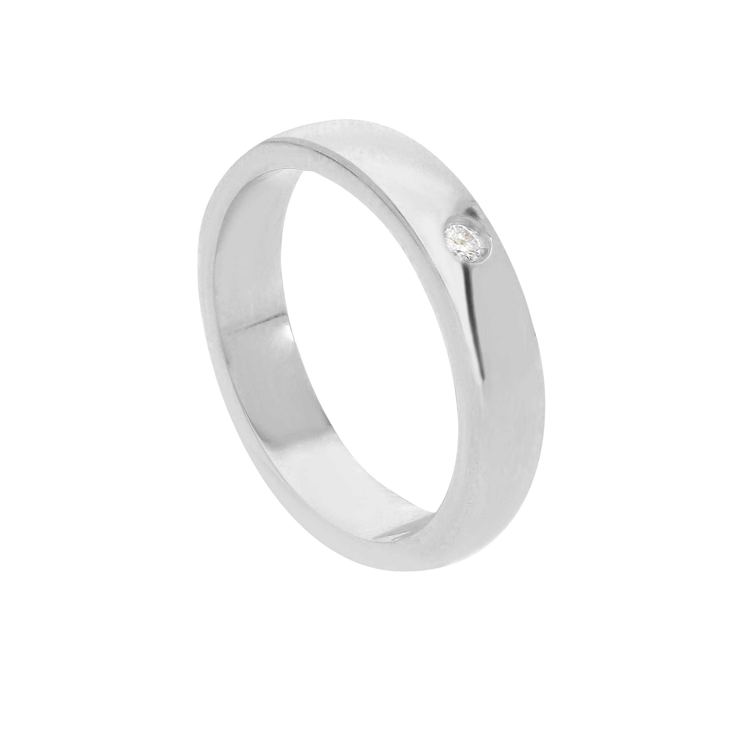 Diamante incastonato da 0,03 ct aggiunge un tocco di luce discreto e prezioso, donando alla fede un dettaglio elegante senza comprometterne l’equilibrio estetico complessivo.