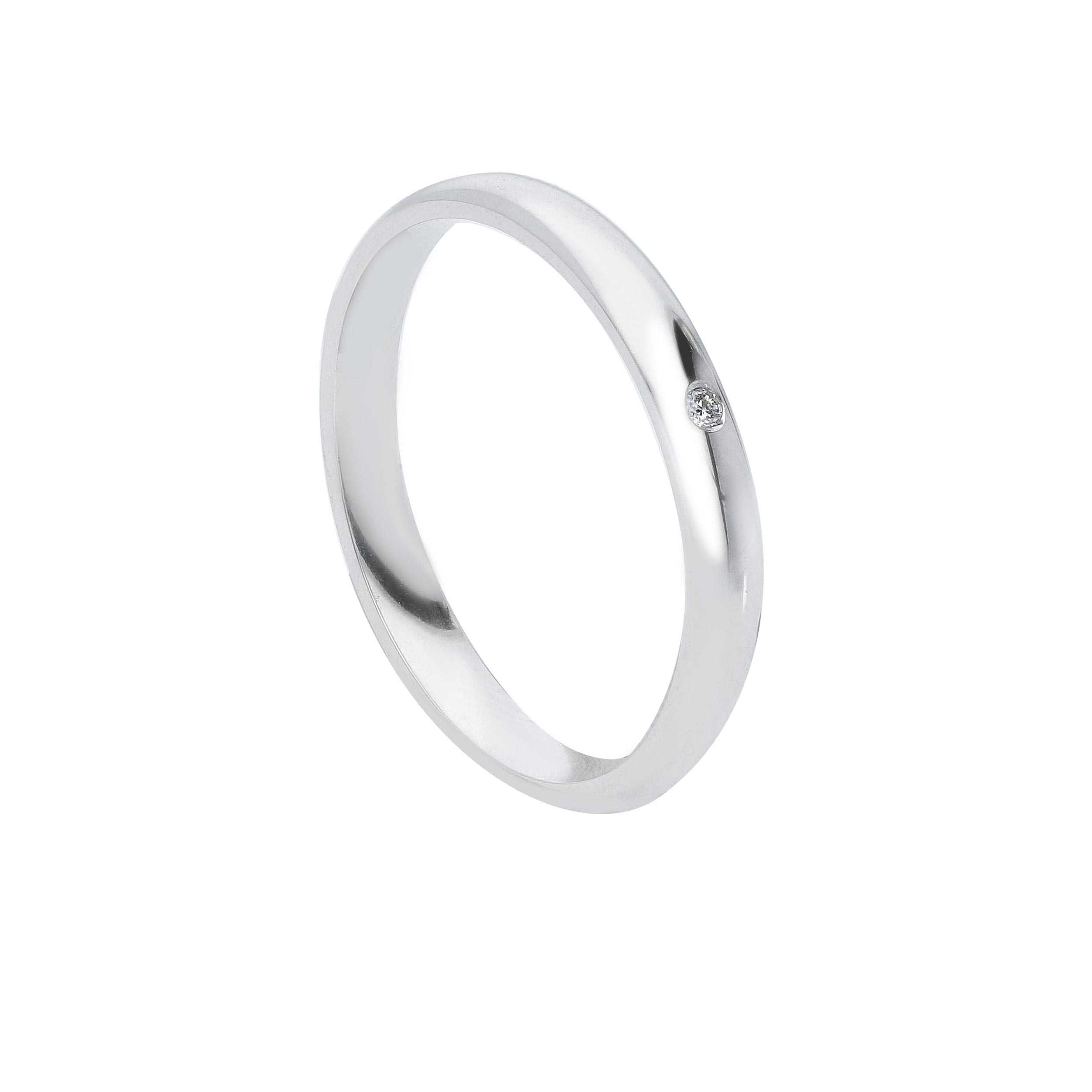 Un diamante incastonato da 0,01 ct aggiunge un tocco di luce discreto e prezioso, rendendo questa fede ancora più speciale senza comprometterne l’equilibrio estetico.