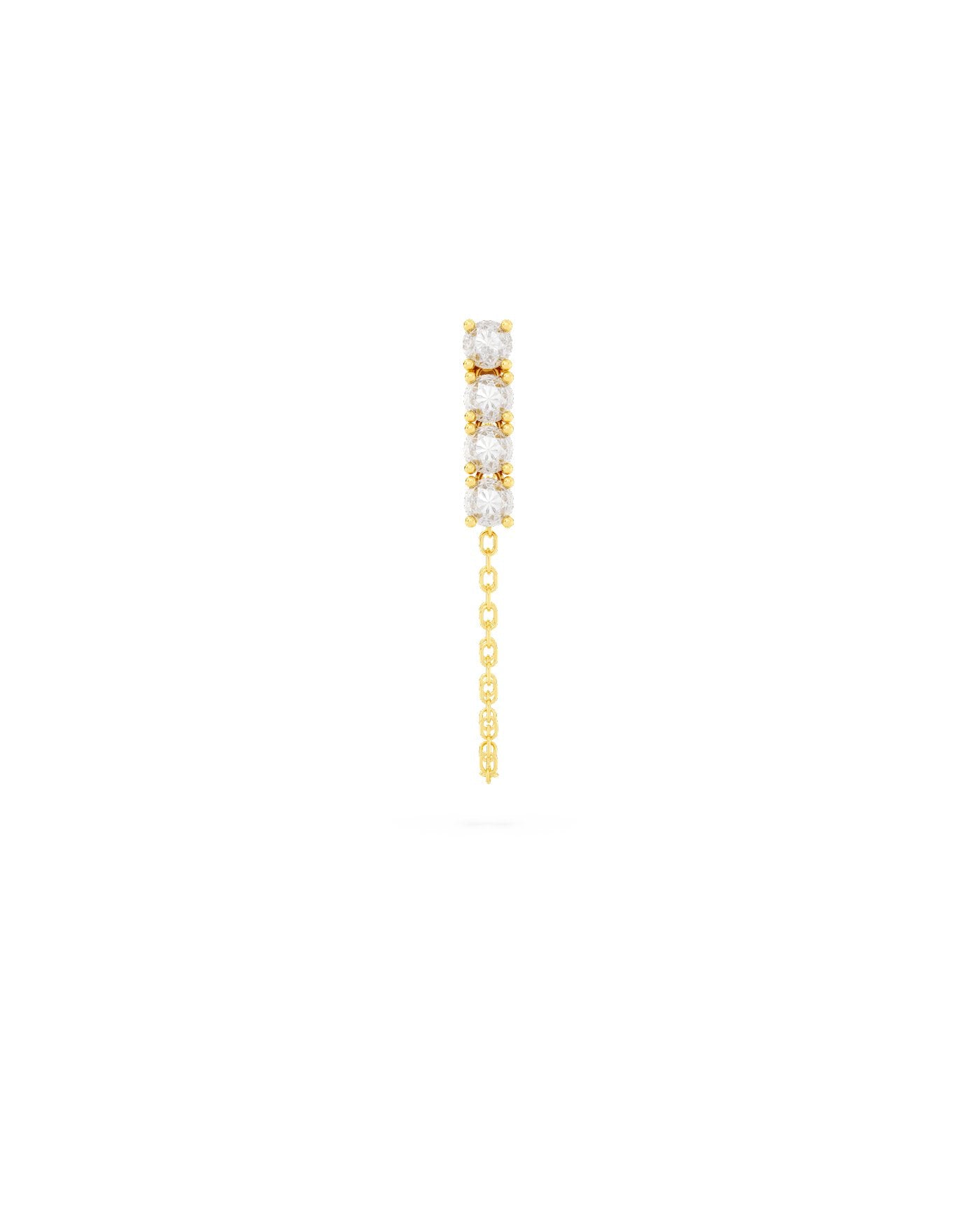 Bond Light nasce con un’anima urban-chic, ma la sua luminosità lo rende perfetto anche per look serali più sofisticati. Quattro punti luce si dispiegano in verticale, collegati da una catena sottile.