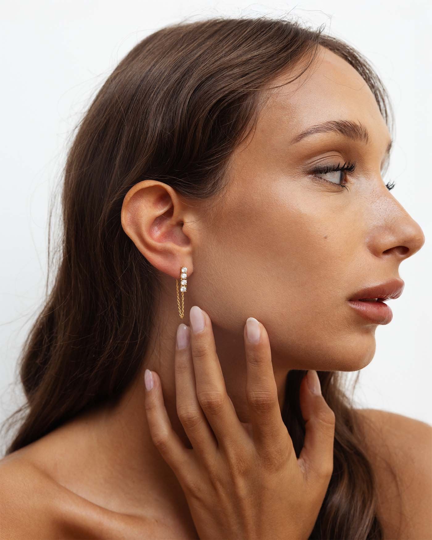 Può essere indossato come pendente classico oppure, grazie all’utilizzo della farfallina su un secondo foro – ad esempio l’helix – può creare un raffinato effetto avvolgente che percorre il profilo dell’orecchio.