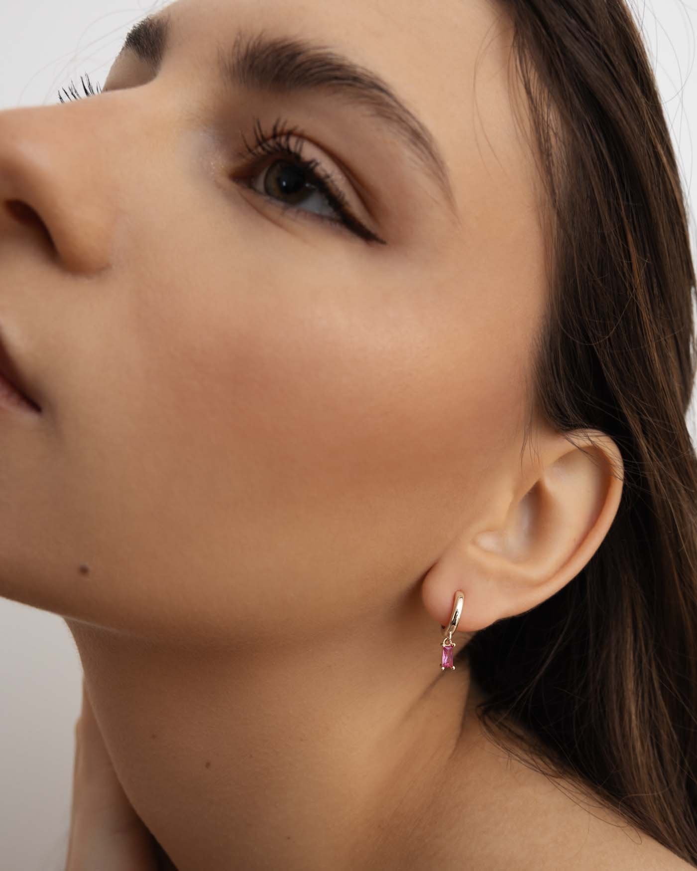 Orecchino Amabile Hoop Baguette fucsia