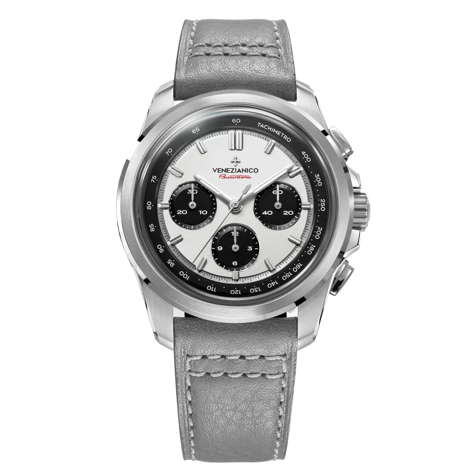Il nostro cronografo prende il nome di Bucintoro, il sontuoso vascello utilizzato dal Doge di Venezia per aprire l’annuale competizione di voga che oggi è nota come Regata Storica. Questa gara rappresenta l’unione ideale del concetto agonistico di velocità sull’acqua con l’eleganza della tradizione.