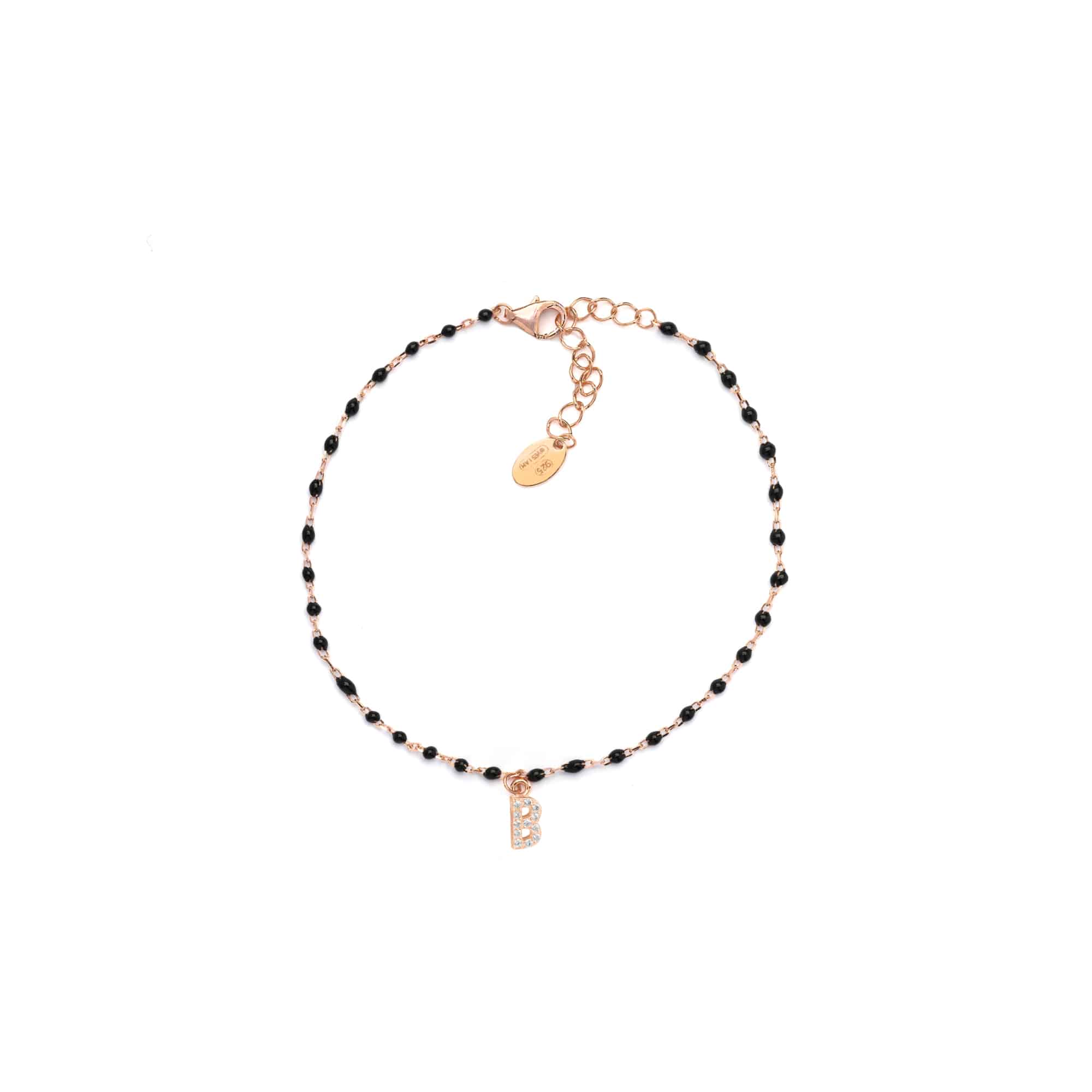 Bracciale Yes I am smalto nero iniziale N